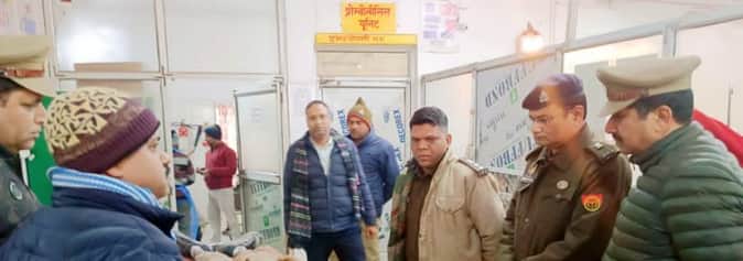 मेडिकल कॉलेज सुल्तानपुर में मृतक के बारे में जानकारी लेने पहुंचे एसपी कुंवर अनुपम सिंह।