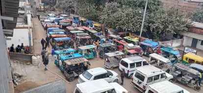 रेलवे स्टेशन के बाहर लगा वाहनों का जमावड़ा। संवाद