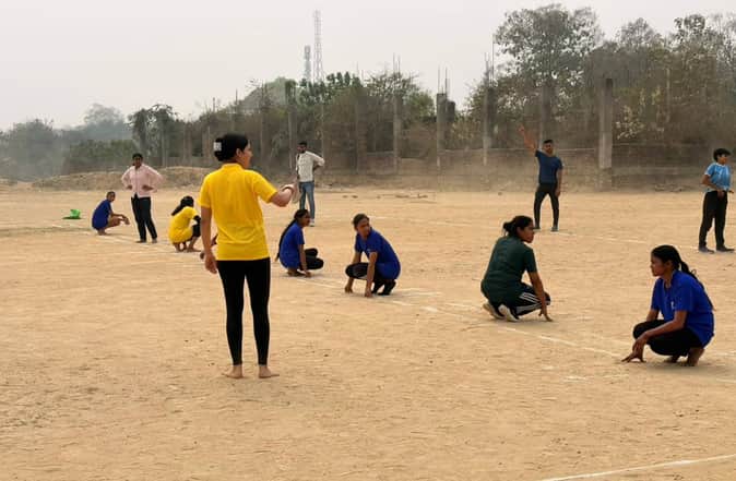 राणा प्रताप पीजी कॉलेज के खेल मैदान में खोखो खेलती बालिकाएं। स्रोत- खेल विभाग