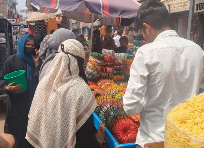 शहर के चौक में ईद के लिए चूड़ियों की खरीदारी करतीं महिलाएं। संवाद