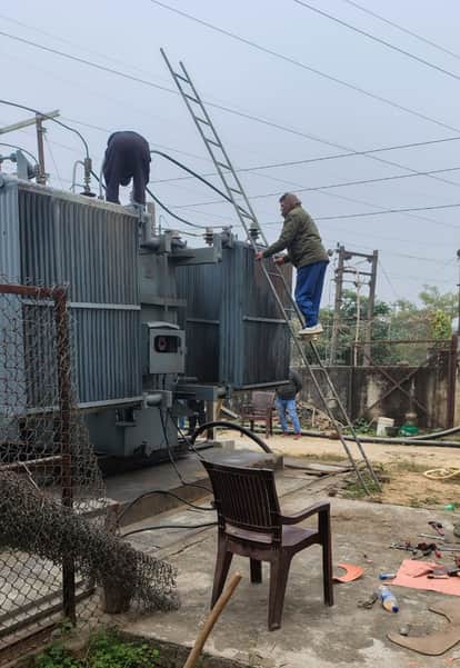 कादीपुर उपकेंद्र में ट्रांसफॉर्मर की मरम्मत करते कर्मी।