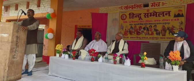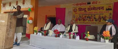 - फोटो : लंभुआ के अर्जुनपुर में आयोजित हिंदू सम्मेलन को संबोधित करते आरएसएस के सह प्रांत प्रचारक सुनील।
