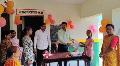 कंपोजिट विद्यालय देवगढ़ में खिलाड़ियों को पुरस्कृत करते अतिथि। स्रोत- विद्यालय