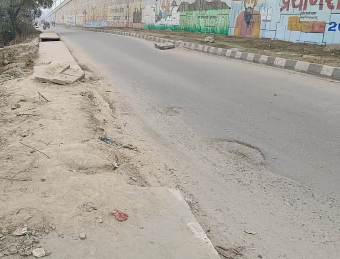 - फोटो : लखनऊ-वाराणसी हाईवे पर पयागीपुर चौराहे के पास पाटी गई नाली।