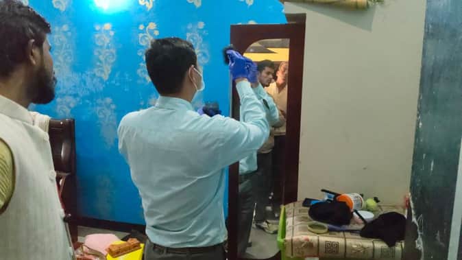 हयातनगर में घटनास्थल की जांच करती फोरेंसिक टीम।