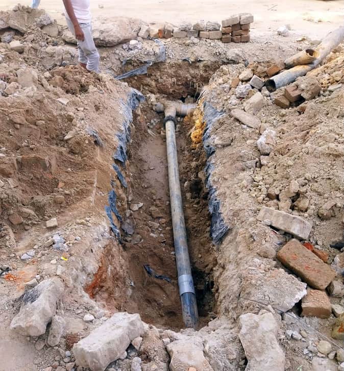 शहर के विवेकनगर में पाइप लाइन की लीकेज ठीक करने के लिए खोदा गड्ढा। स्रोत-नगर पालिका
