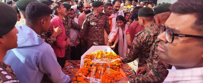 सेना का वाहन जैसे ही अलीगंज सीमा में दाखिल हुआ, सैंकड़ों की भीड़ उमड़ पड़ी। किसी के हाथ में तिरंगा था तो किसी की आंखों में आंसू। अखिलेश शुक्ला अमर रहे ...नारों से इलाका गूंज उठा। लोग छतों पर, दीवारों पर, पेड़ों तक पर चढ़कर अपने लाल की एक झलक पाने को बेताब दिखे। पार्थिव शरीर पहुंचा तो परिजनों का करुण विलाप माहौल को और भी गमगीन कर गया।