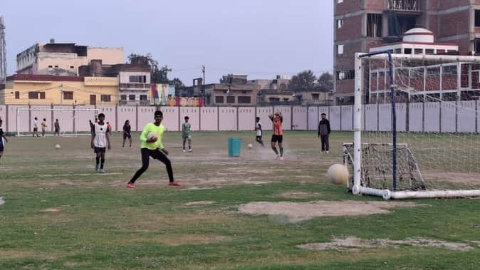 Sultanpur News: गोल पोस्ट पर अभ्यास कर रही फुटबॉल की नई पौध
