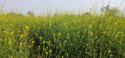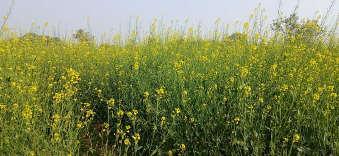 शहर से सटे कुड़वार क्षेत्र में खेतों में खड़ी सरसों की फसल। स्रोत-ग्रामीण