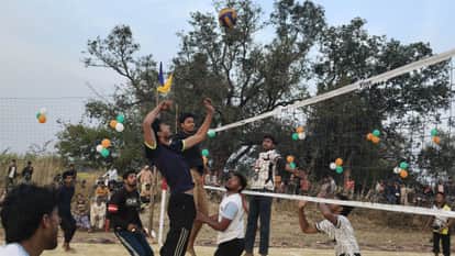 कूरेभार के परवर गांव में वॉलीबॉल खेलते खिलाड़ी। संवाद
