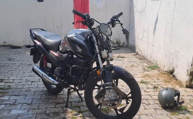 सेमरी टोल प्लाजा पर खड़ी दुर्घटनाग्रस्त बाइक।