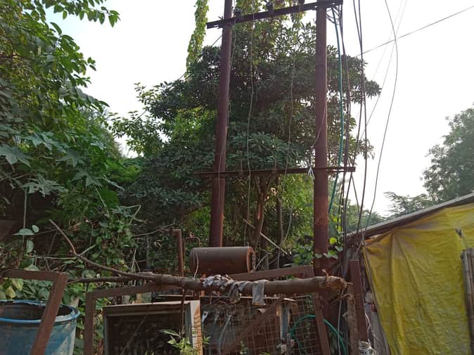 गोलाघाट पुल के रास्ते में मौजूद खंभा, ट्रांसफार्मर व पेड़।