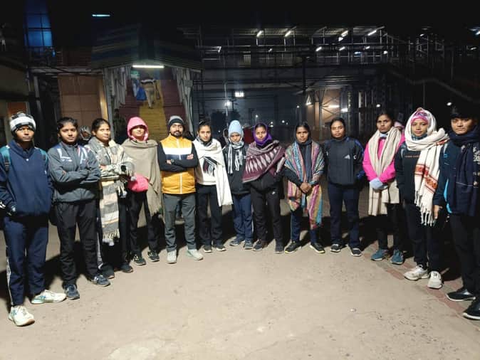 सुल्तानपुर रेलवे स्टेशन से प्रयागराज रवाना होती कबड्डी की महिला खिलाड़ी।