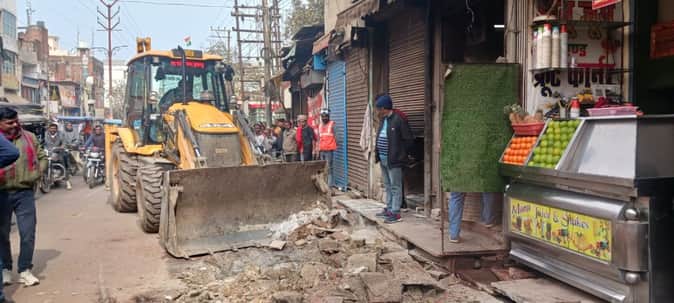 Sultanpur News: सड़क पटरी पर अतिक्रमण को जेसीबी से तोड़ा