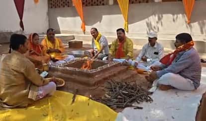 फोटो-18- नवाबगंज में महर्षि जमदग्नि आश्रम में हवन करते लोग। संवाद