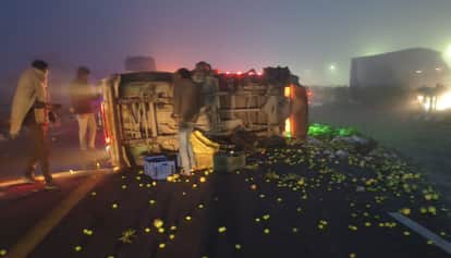 औरास। आगरा-लखनऊ एक्सप्रेसवे पर दिल्ली से मरीज को लेकर गोरखपुर लेकर जा रही एंबुलेंस चालक ने आगे चल रही बस से बचने के लिए ब्रेक लगाई। तभी पीछे से आ रहा अमरूद लदा लोडर की टक्कर से एंबुलेंस पलट गई। हादसे में एंबुलेंस में वेंटिलेटर पर रहे मरीज की मौत हो गई जबकि उनकी पत्नी सहित तीन लोग घायल हो गए। रेस्क्यू टीम ने तीनों को लखनऊ ट्राॅमा सेंटर में भर्ती कराया है।