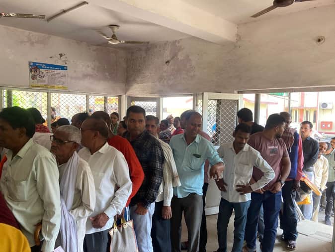 फोटो-30- जिला अस्पताल में पर्चा काउंटर पर पर्चा बनवाने के लिए लगी लाइन। संवाद