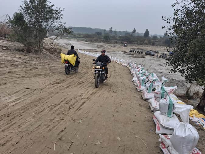 फोटो-6-कालीमिट्टी-शिवराजपुर मार्ग पर बने वैकल्पिक रास्ते से निकलते बाइक सवार। संवाद