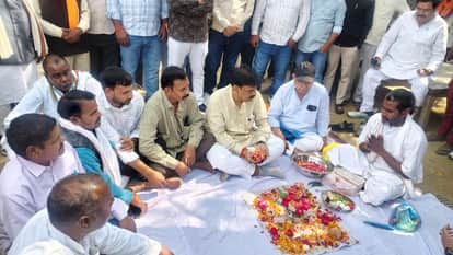 फोटो-7- भूमि पूजन करते सदर विधायक पंकज गुप्ता। स्रोत: कार्यकर्ता