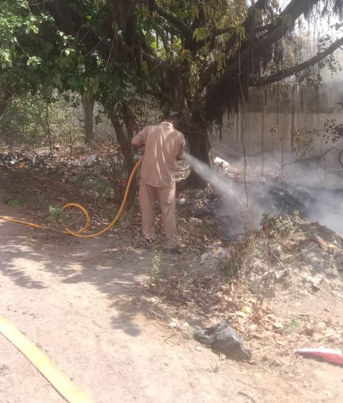 फोटो-18-पावर हाउस में खरपतवार में लगी आग को बुझाते कर्मी। स्रोत: दमकल कर्मी।