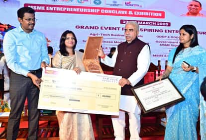सोमवार को चंद्रशेखर आजाद कृषि विश्वविद्यालय कानपुर में आयोजित कार्यक्रम में सूक्ष्म, लघु एवं मध्यम उद्यम कैबिनेट मंत्री राकेश सचान और मंडलायुक्त के विजय पांडियन ने आयुषी को सम्मानित किया। उन्हें 35 हजार रुपये का प्रतीकात्मक चेक, ताम्रपत्र व प्रशस्तिपत्र प्रदान किया गया। आयुषी के पिता सतीश कुमार श्रीवास्तव रायबरेली के जिला अस्पताल में मुख्य फार्मासिस्ट के पद पर तैनात हैं।