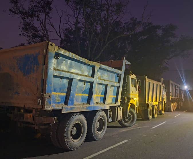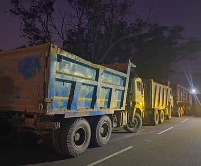 फोटो-26- अजगैन कोतवाली के बाहर खड़े सीज किए गए डंपर। स्रोत: पुलिस