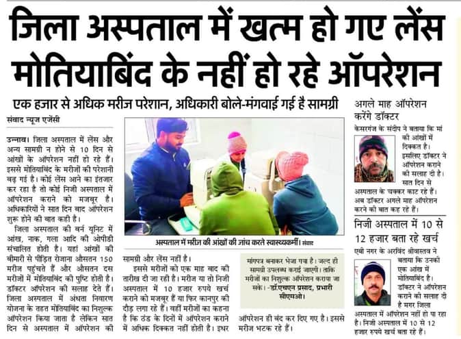 Unnao News: लेंस और अन्य सामग्री मिली, आज से होंगे मोतियाबिंद के ऑपरेशन