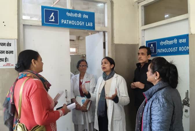 फोटो-23- जिला अस्पताल की पैथोलॉजी में स्वास्थ्य कर्मियों से जानकारी लेती राष्ट्रीय स्वास्थ्य मि