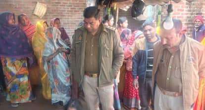 फोटो-3- मृतका के घर पर जांच करते कोतवाल शरद कुमार। स्रोत: ग्रामीण