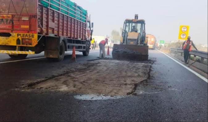 दूसरी लेन पर हाईवे की मरम्मत से शाम तक जाम