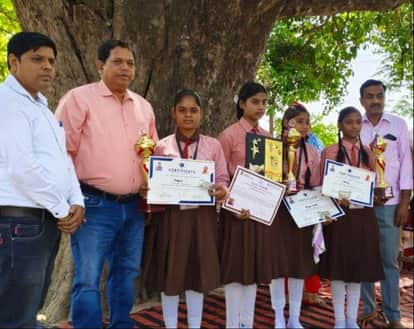 फोटो-1- प्रमाण पत्र दिखातीं छात्राएं। स्रोत: शिक्षक