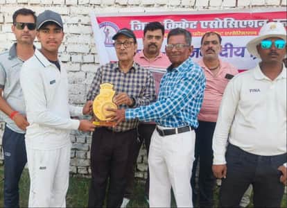 फोटो- 4-अंशराज को प्लेयर ऑफ द मैच की ट्राफी देते एसोसिएशन के पदाधिकारी। स्रोत: एसोसिएशन