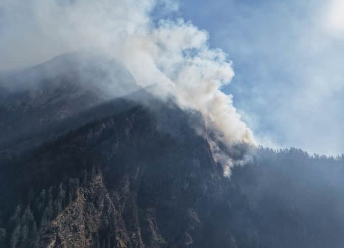 ज्योतिर्मठ में भ्यूंडार व पुलना के जंगलों में भड़की आग से निकलता धुआं। स्रोत: जागरुक पाठक