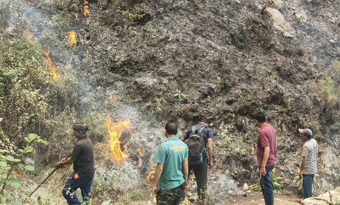 गोदी गिवाला क्षेत्र की आग ग्रामीणों ने मिलकर बुझाई, खाल व कैलब बीट में वन कर्मी बुझाने में जुटे