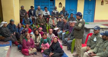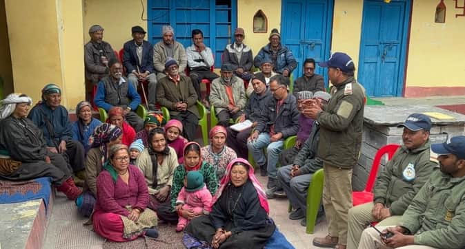 ज्योतिर्मठ के पैंग गांव में बैठक के दौरान मौजूद ग्रामीण व वन विभाग के कर्मचारी। स्रोत जागरुक पा