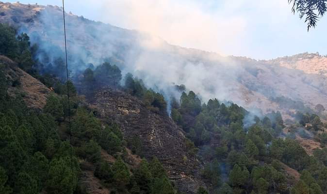 वन विभाग और फायर ब्रिगेड के कर्मी पहुंचे लेकिन बुझ नहीं सकी आग