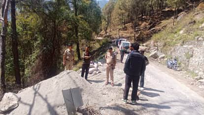 बदरीनाथ हाईवे के वैकल्पिक सैकोट मार्ग का निरीक्षण करते पुलिस अधिकारी। स्रोत: पुलिस