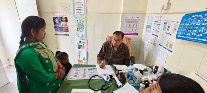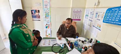 जिला अस्पताल में बच्चे की जांच के बाद दवा लिखते बाल रोग विशेषज्ञ। संवाद