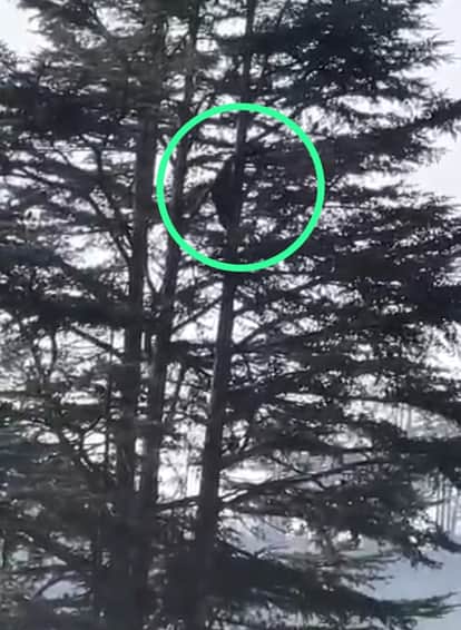 लोहाघाट के कोलीढेक में पेड़ पर चढ़ा तेंदुआ। स्रोत : वीडियो ग्रैब