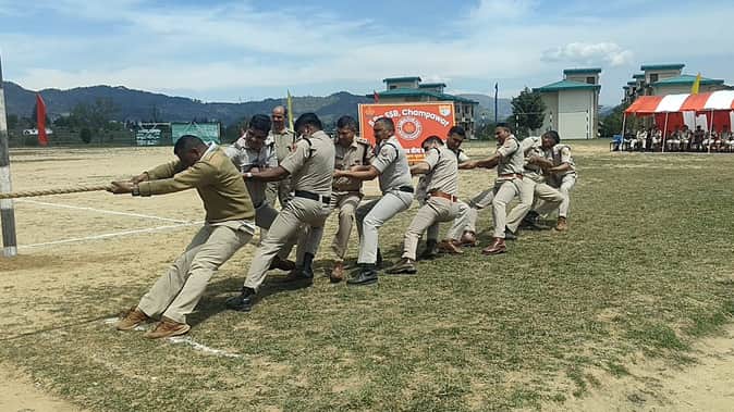 चंपावत पंचम वाहिनी परिसर में रस्साकस्सी में दमखम दिखाते हिमवीर। संवाद