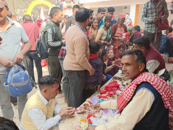 लोहाघाट के पंचेश्वर में उत्तरायणी महोत्सव के शुभारभ पर पूजा अर्चना करते श्रद्धालु। स्रोत : श्रद