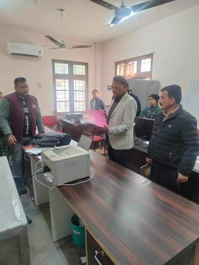 फोटो 25 जनवरी 04- रामनगर के ब्लॉक कार्यालय का निरीक्षण करते एसडीओ।
