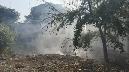 एसएसपी आवास के बगल में कूड़े में लगी आग, धुआ से फैला प्रदूषण। अमर उजाला