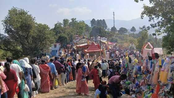 विकासखंड कोट के देहलचौरी स्थित कांडा गांव में आयोजित मेले में पहुंची श्रद्धालुओं की भीड़---स्