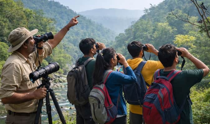 कोटद्वार के सनेह क्षेत्र में बर्ड वॉचिंग करते पर्यटक- स्रोत सूचना विभाग,फाइल फोटो।