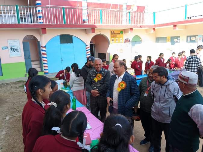 बीआर मॉर्डन स्कूल में विज्ञान प्रदर्शनी में बच्चों के मॉडलों को अवलोकन करते जिला शिक्षा अधिका