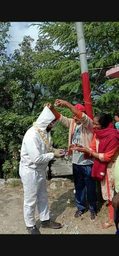 रोटी बैक के सदस्यों का स्वागत करते प्रवासी लोग। संजू पंत डीडीहाट - फोटो : AMAR UJALA