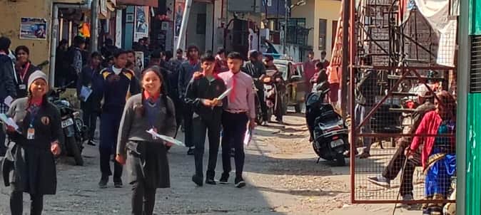 डीडीहाट के परीक्षा केंद्र केंद्रीय विद्यालय मिर्थी में परीक्षा देकर बाहर आते परीक्षार्थी। संवाद