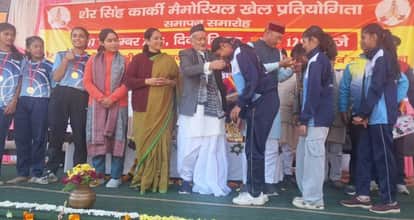 मुवानी में खेल प्रतियोगिता के समापन पर विजेता विद्यार्थियों को मेडल प्रदान करते पूर्व राज्यपाल