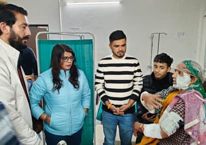 डीडीहाट अस्पताल में भर्ती गुलदार के हमले में घायल महिला का हाल जानते जनप्रतिनिधि और एसडीएम। संव